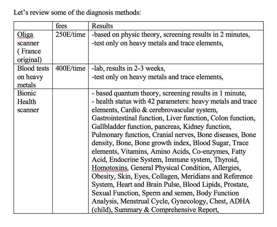 • Over 450 scanner sold to clinics in Europe in the last 2 years, they used the scanners for initial and control examinations. It provides the patient’s health status with 42 parameters – from amino acids to heavy metals – with hundreds of values up to date and regularly;