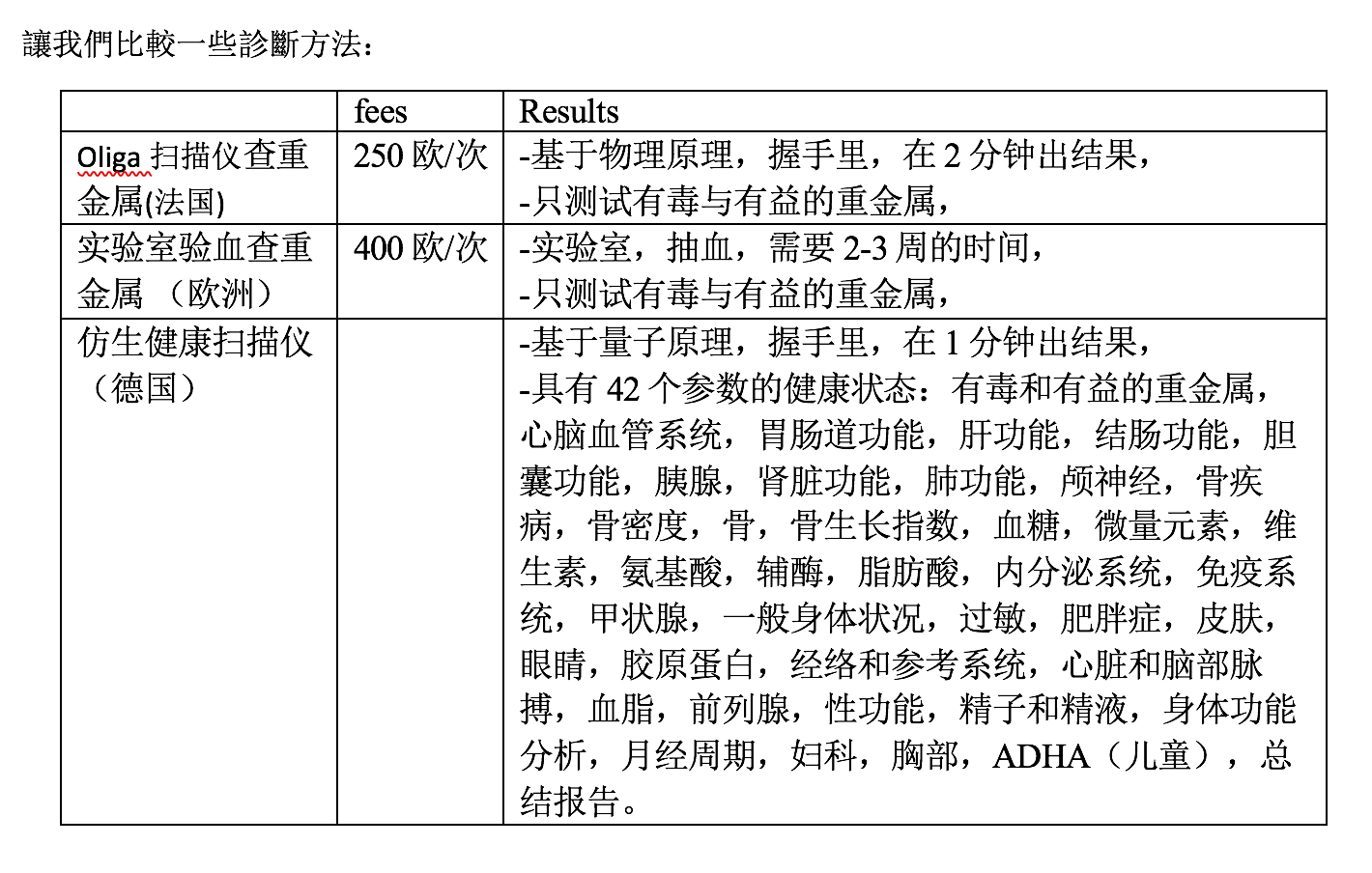• It is based on the latest quantum, AI, element of human and medical knowledge, measures the magnetic waves of our cells and organs in a range between nano and micro gauss and compares them with patient-specific normal values that have been verified over several thousand measurements. A clinical diagnosis follow up with the suspected area will give you the detail health results;